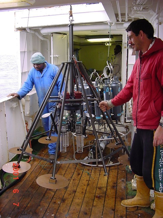 MC-200:是MC系列多管柱状取样器中最小型的一款。该取样器装载4根6.25×32.5cm的聚碳酸酯取样管,有效穿透深度为20cm。取样结束后每个取样管均可轻松拆卸,便于样品的后续处理和取样器的再次运作。取样器高度155cm, 直径140cm,重量24kg,可加20块3.2kg重的配重铅块。